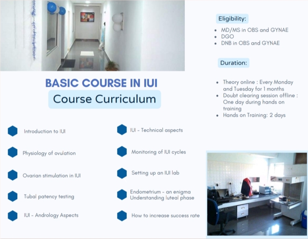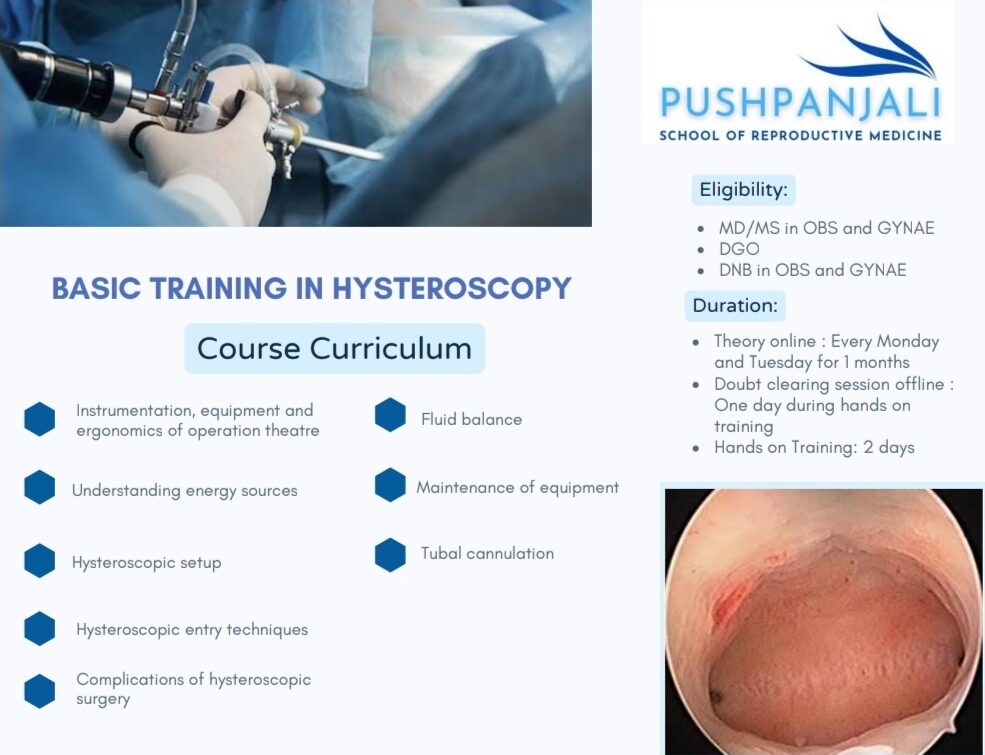 COURSES OFFERED: Basic Infertility CourseBasic Course in IUIBasic Training in Transvaginal UltrasoundBasic Training in LaparoscopyBasic Training in Hysteroscopy
